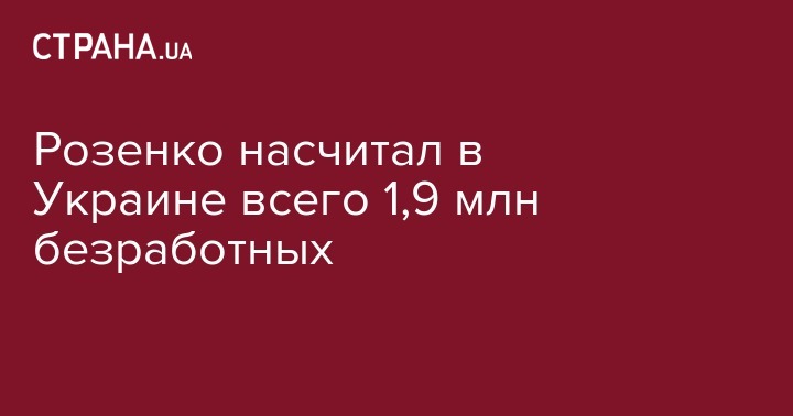 Вице-премьер-министр Павел Розенко заявил, что в Украине всего около 1,9 млн безработных граждан. Об этом он сказал в эфире телеканала ZIK, передает "Интерфакс-Украина".