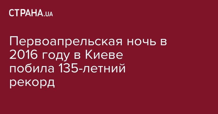 Ночь с 31 марта на 1 апреля в 2016 году в Киеве по температурному режиму побила рекорд за последние 135 лет. Как сообщают по результатам наблюдений в Центральной геофизической обсерватории, первоапрельская ночь в этом году была самой теплой с 1881 года.
