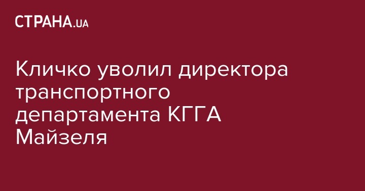 Мэр Киева Виталий Кличко уволил директора департамента транспортной инфраструктуры Киевгорадминистрации Сергея Майзеля. Об этом свидетельствует распоряжение мэра №283 от 25 апреля 2017 г.
