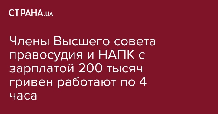 Члены Высшего совета правосудия и НАПК с зарплатой 200 тысяч гривен работают по 4 часа