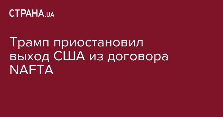 Дональд Трамп приостановил процесс выхода США из договора о международной торговле в Северной Америке (NAFTA) после разговора с президентом Мексики и премьер-министром Канады. Об этом сообщает Укринформ.