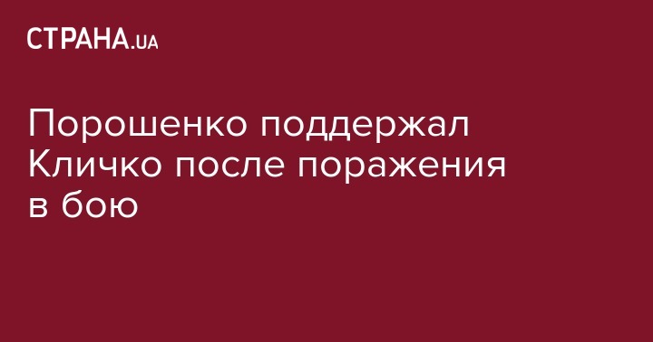 Президент Украины Петр Порошенко поддержал Владимира Кличко после поражения в бою с британцем Энтони Джошуа. Об этом глава государства написал на странице президента в Facebook.