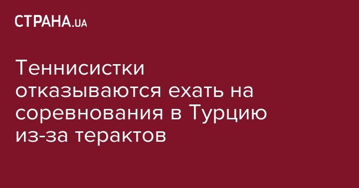 Организаторы турнира WTA в Стамбуле (Турция) "Istanbul Cup", который пройдет с 18 по 24 апреля, столкнулись с массовым отказом от участия теннисисток из-за страха перед терактами, сообщает УНН со ссылкой на Tennis World.