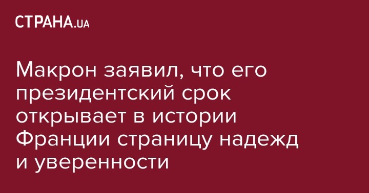 Макрон также отметил, что президентство открывает новую страницу в истории Франции.