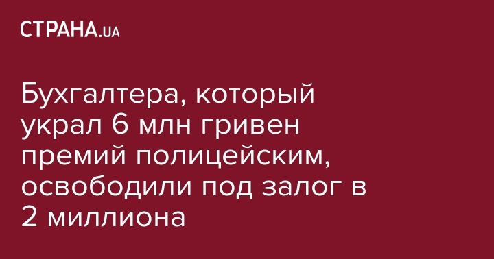 Главного бухгалтера управления Нацполиции в Киеве, которого вместе с другими руководителями задержали за присвоение 6 млн гривен премий полицейским, отпустили под залог в 2 миллиона гривен. Об этом пишут "Наши гроши" ссылаясь на постановление Днепровского суда Киева.