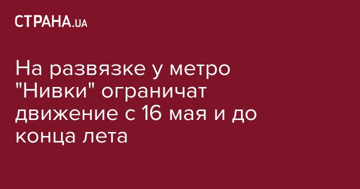 "С 16 мая по 20 августа 2017 продлятся работы по реконструкции транспортного узла на пересечении проспекта Победы с улицей Даниила Щербакивского. Как сообщает КП "Киевавтодор", в рамках ремонтных работ с 16 мая будет ограничено движение транспорта на путепроводе возле станции метро "Нивки" в направлении центра города. Движение транспорта будет осуществляться низовой частью просп. Победы", - уточнили в пресс-службе КГГА.