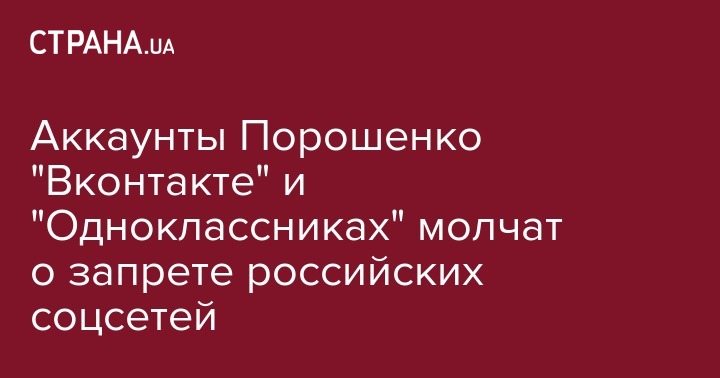 Официальные аккаунты Петра Порошенко "Вконтакте" и "Одноклассниках" не опубликовали новость про указ президента о запрете российских соцсетей.
