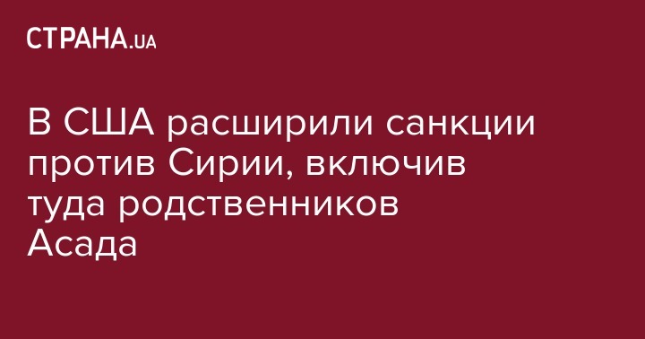 В США расширили санкции против Сирии, включив туда родственников Асада