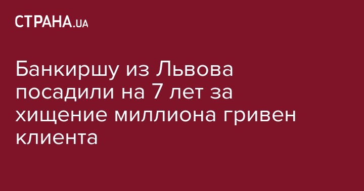 Начальницу одного из отделений ПАО "Укринбанк" во Львовской области приговорили к 7 годам лишения свободы за хищение средств клиента на сумму 1 млн грн.