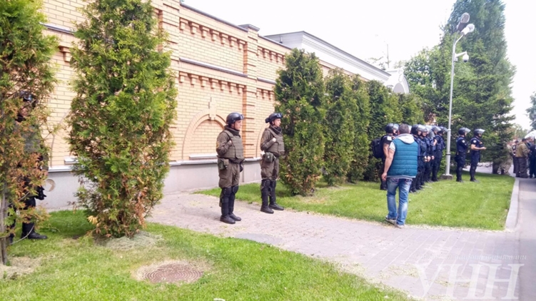 Отряд полиции стоял перед воротами, ведущей во двор имения. Кроме того, по периметру забора также находились сотрудники Национальной гвардии Украины - более 50 человек.