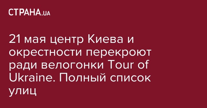 21 мая центр Киева и окрестности перекроют ради велогонки Tour of Ukraine. Полный список улиц