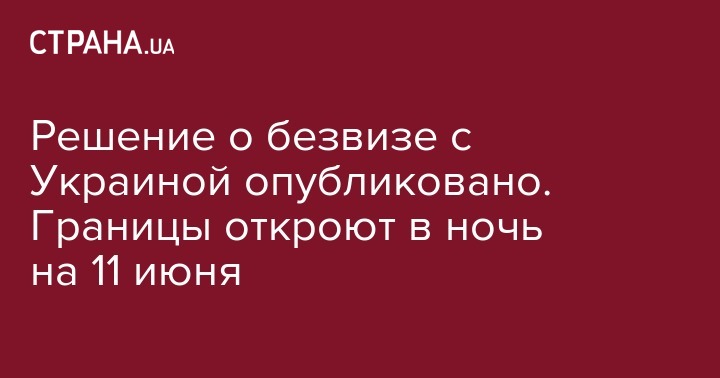 Решение о безвизе с Украиной опубликовано. Границы откроют в ночь на 11 июня