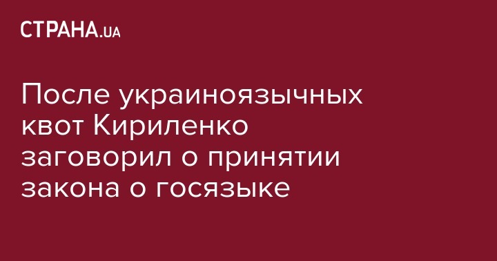 "И мы должны, сделав вот эти шаги в отдельных направлениях, выходить на решение ключевого вопроса – принять новый закон о государственном языке. Есть несколько законопроектов в парламенте и надо искать компромисс. И я убежден, он будет найден", – заявил Кириленко.