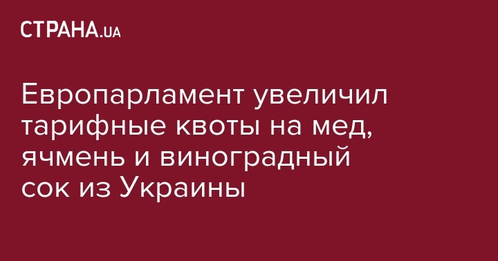 Европарламент по инициативе Еврокомиссии увеличил тарифные квоты на мед, кукурузу, ячмень, овес, крупы и обработанное зерно, виноградный сок из Украины. Об этом пишет "Интерфакс-Украина".