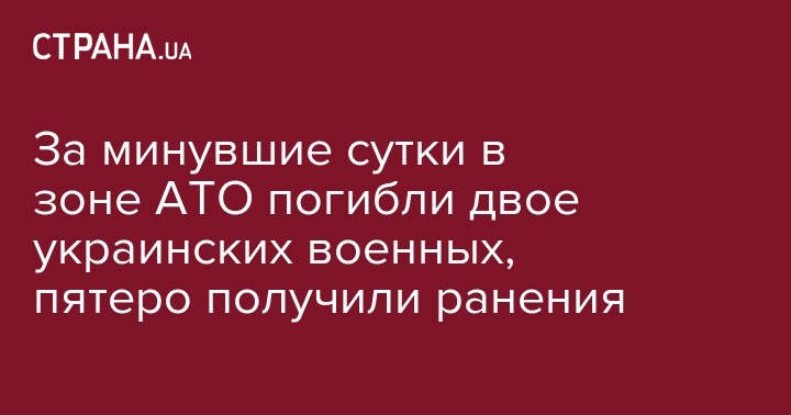 "В результате боевых действий за прошедшие сутки двое украинских воинов погибли. Еще пятеро бойцов сил АТО получили ранения", - говорится в сообщении.
