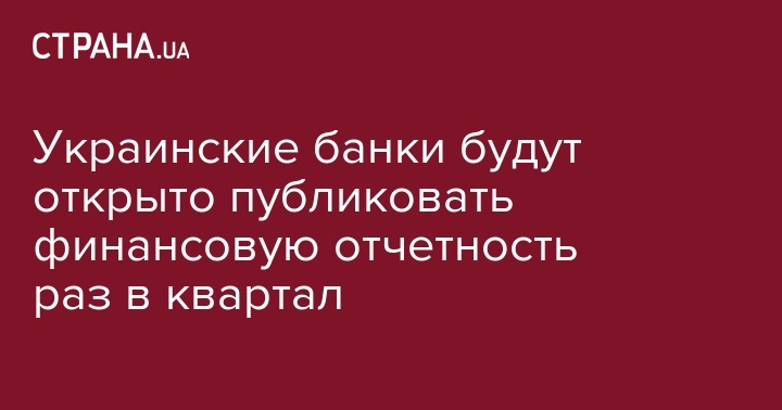 Национальный банк Украины (НБУ) обязал банки ежеквартально до 30 числа следующего за отчетным периодом месяца подавать в электронном формате в НБУ показатели финансовой деятельности, показатели о финансовых результатах и отдельные показатели деятельности для их размещения на страницах официального интернет-представительства центробанка.