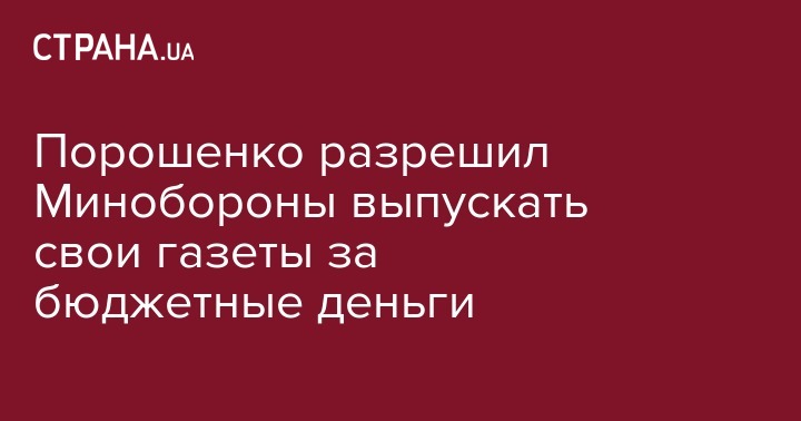Президент Петр Порошенко подписал закон, который разрешает создавать печатные средства массовой информации Министерства обороны на время проведения антитеррористической операции (№ 2051-VIII). Об этом сообщается на сайте главы государства.