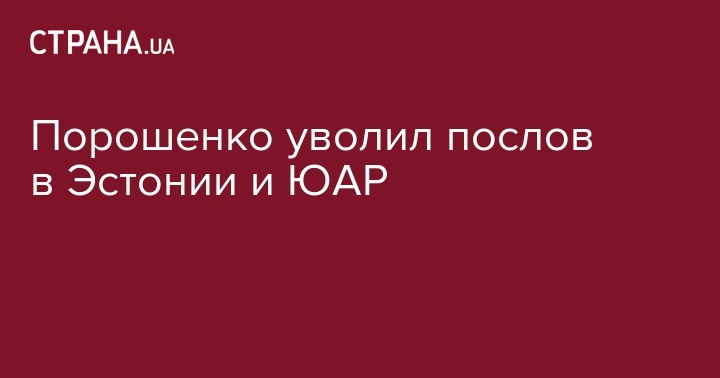 Президент Украины Петр Порошенко уволил с должности украинского посла в Эстонии Виктора Крыжановского и посла в Южно-Африканской Республике Евгения Бурката.