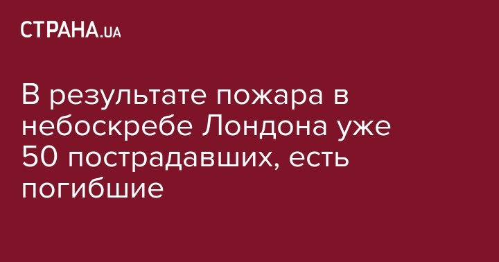 "В пять больниц Лондона поступили 50 пострадавших после пожара в Grenfell Tower", — говорится в сообщении.
