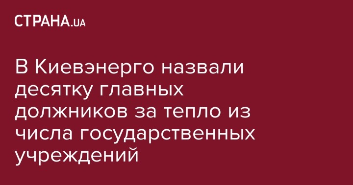 Список из десяти главных должников за теплоэнергию в столице среди государственных учреждений составила компания "Киевэнерго". Соответствующую информацию она опубликовала на своей странице в Facebook.