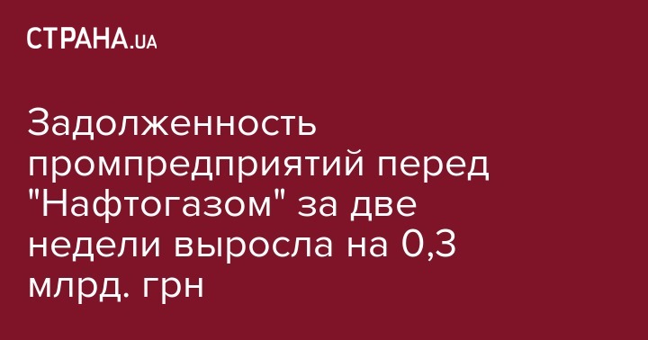 Задолженность предприятий теплоэнергетики и прямых промышленных потребителей перед НАК "Нафтогаз Украины" за последние две недели выросла на 0,3 млрд грн и к середине июня достигла 31,9 млрд грн. Об этом пишет пресс-служба НАК "Нафтогаз Украины".