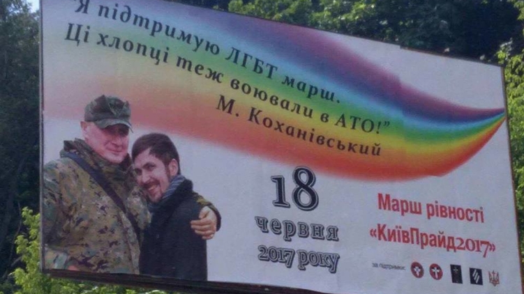 Как уже писала "Страна" накануне воскресного ЛГБТ-марша по всему городу неизвестные устаноаили наружную рекламу с изображением командира ОУН радикального националиста Николая Коханивского в обнимку с другим младорадикалом Богданом Тицким и словами поддержки гей-парада.