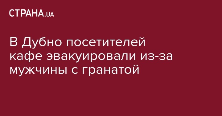 В райцентре Дубно в Ровенской области полиции пришлось эвакуировать 25 посетителей из кафе, после того, как туда зашел мужчина с гранатой. Об этом сообщает УНН.