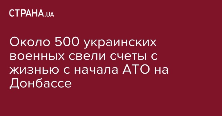 С начала военных действий и по состоянию на начало июня 2017 года зарегистрировано около 500 случаев самоубийств военных, которые воевали в зоне АТО на Донбассе. Об этом говорится в статье главы МВД Арсена Авакова "Стратегия гибридного мира" для "Украинской правды".