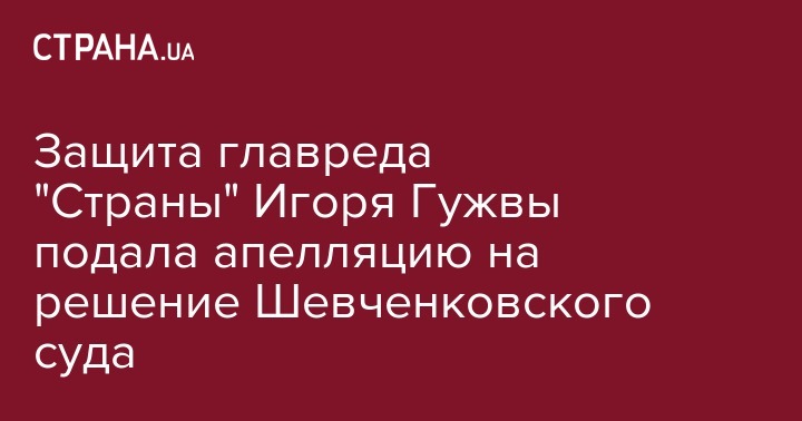 Защита главного редактора интернет-издания "Страна.ua" Игоря Гужвы подала апелляционную жалобу на определение Шевченковского районного суда Киева. Об этом сообщает адвокат Юрий Иващенко на своей странице в Facebook.