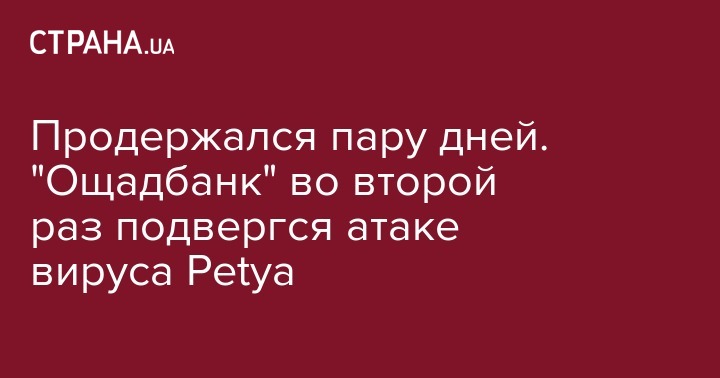 Продержался пару дней. "Ощадбанк" во второй раз подвергся атаке вируса Petya