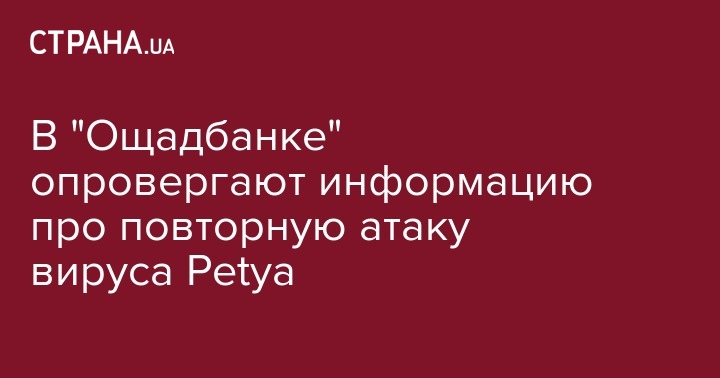 Государственный "Ощадбанк" выпустил официальное опровержение информации "Страны", что их серверы сегодня во второй раз подверглись кибератаке вирусом Petya. Об этом заявили в пресс-службе финансового учреждения.