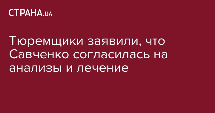 В Федеральной службе исполнения наказаний (ФСИН) России заявили, что украинская летчица Надежда Савченко, которую в РФ приговорили к 22 годам колонии общего режима дала согласие на проведение медосмотров и начала получать поддерживающую терапию. Об этом сообщает ТАСС, со ссылкой на пресс-бюро ФСИН России.