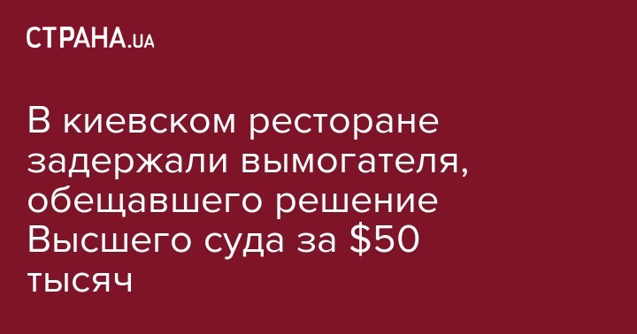 В Киеве задержан злоумышленник, который требовал $50 тысяч за влияние на принятие решения коллегией судей Высшего специализированного суда Украины. Об этом сообщает пресс-служба прокуратуры Киева.