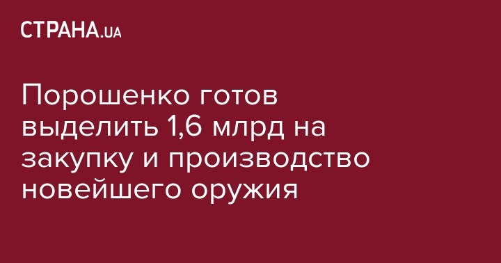 Президент Украины Петр Порошенко заявил, что на закупку и производство новейшего вооружения и военной техники будет дополнительно выделено 1,6 млрд грн. Об этом сообщает "Интерфакс-Украина".