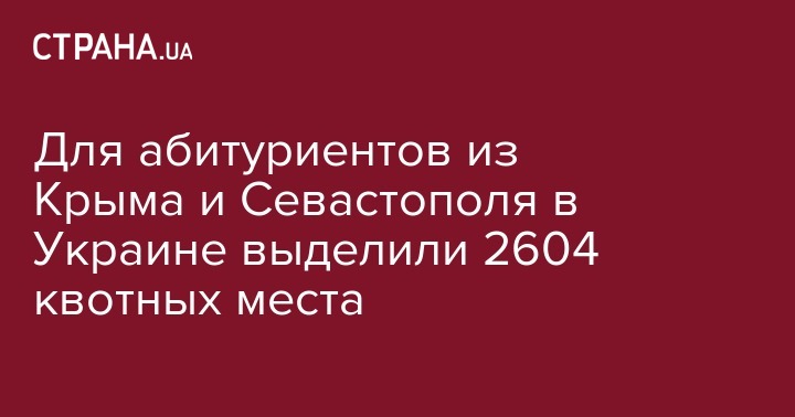 Для абитуриентов из Крыма и города Севастополя в этом году предусмотрена квота в размере 2604 места в высших учебных заведениях Украины. Об этом на пресс-конференции заявил директор департамента высшего образования Министерства образования и науки Олег Шаров, сообщает "Укринформ".