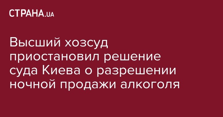 Высший хозяйственный суд приостановил выполнение решения хозсуда Киева, который отменил решение Киевского городского совета о запрете реализации алкогольных, слабоалкогольных напитков и пива в стационарных объектах торговли (магазинах и торговых сетях) с 23:00 до 10:00. Об этом говорится в определении суда от 6 июля, пишут "Украинские новости".