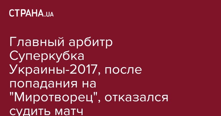 Главный арбитр Суперкубка Украины-2017, после попадания на "Миротворец", отказался судить матч Динамо-Шахтер