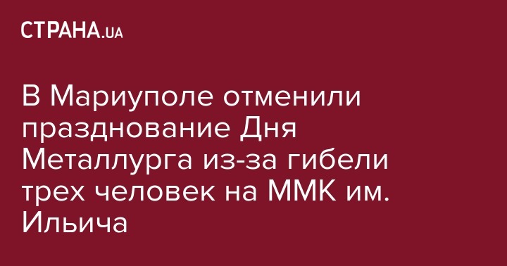 Из-за гибели трех работников ООО "СМК Акцепт-Строй", проводивших подрядные работы на Мариупольском металлургическом комбинате им. Ильича (ММК), входящем в группу "Метинвест", принято решение отменить все праздничные мероприятия в Мариуполе ко Дню металлургов и горняков, передает "Интерфакс-Украина".