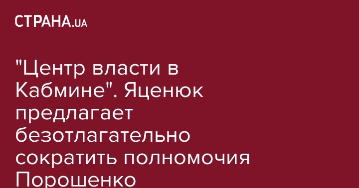 "Центр власти в Кабмине". Яценюк предлагает безотлагательно сократить полномочия Порошенко