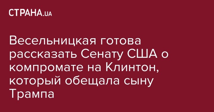 Весельницкая готова рассказать Сенату США о компромате на Клинтон, который обещала сыну Трампа