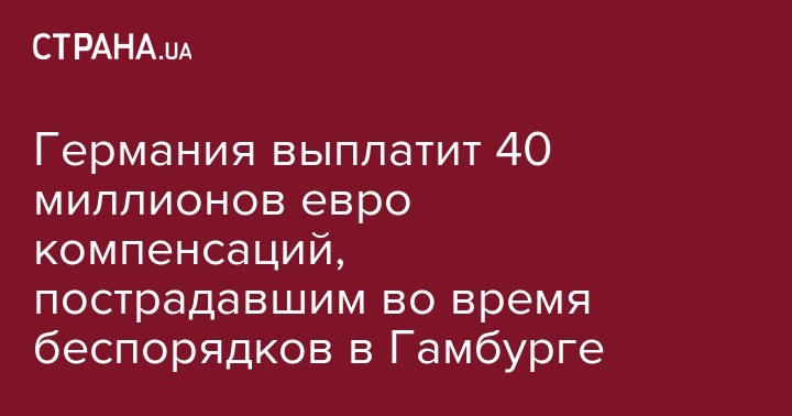 Германия выплатит 40 миллионов евро компенсаций, пострадавшим во время беспорядков в Гамбурге