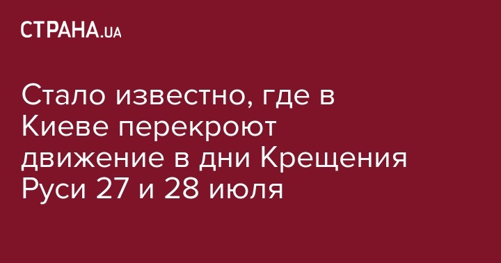 В КГГА хотят перекрыть движение транспорта в центре Киева на 27 и 28 июля. Это будет сделано из-за крестных ходов в рамках годовщины крещения Руси, сообщает Realist.