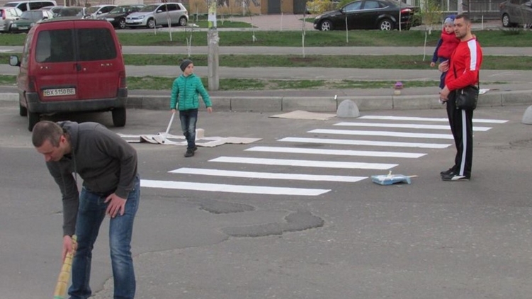 На Осокорках в Киеве жители сами нарисовали на дороге "зебру"