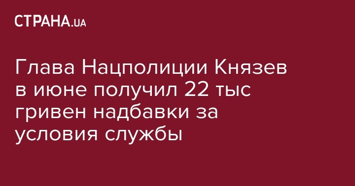 Заработная плата главы Национальной полиции Сергея Князева за июнь составила 104 265 гривен, сообщают Украинские новости.