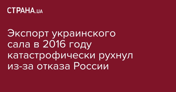 В 2016 году экспорт украинского свиного сала в денежном выражении снизился в 87,9 раза или на 98 процентов. После отказа России покупать украинское сало, все остальные страны мира заплатили за этот товар всего $0,088 млн. При этом в 2015-м году украинцы заработали на сале $7,74 миллиона.