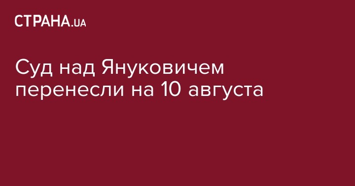 Оболонский районный суд Киева перенес рассмотрение уголовного производства по обвинению экс-президента Украины Виктора Януковича на 10:00 10 августа. Об этом сообщил председательствующий судья Владислав Девятко, передает УНН.