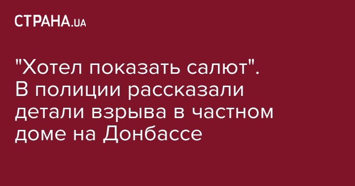 Причиной взрыва в частном жилом доме в с. Дачное в Донецкой области стало вызывающее поведение хозяина, который с помощью гранаты хотел продемонстрировать гостям салют. Об этом сообщил  отметила в эфире телеканала 112 Украина.