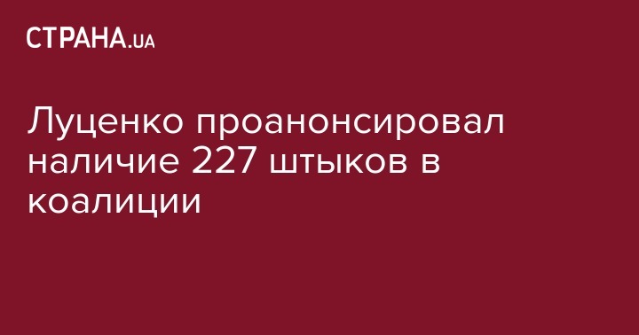 В парламентской коалиции насчитывается 227 народных депутатов. Об этом с парламентской трибуны заявил лидер фракции "Блок Петра Порошенко" Юрий Луценко во время обсуждения отставки действующего правительства.