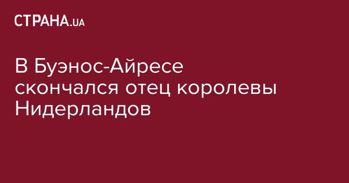 В Буэнос-Айресе (Аргентина) в возрасте 89 лет от рака умер отец королевы Нидерландов Максимы Хорхе Зоррегьета. Об этом со ссылкой на Королевский дом передает Reuters.