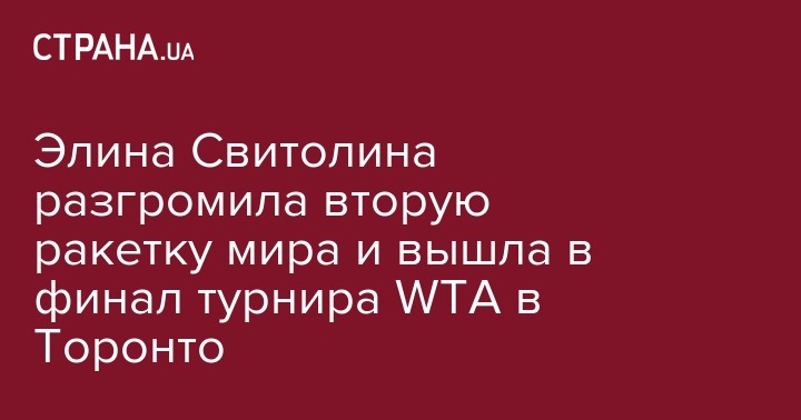 Сегодня ночью, наша Элина Свитолина одержала убедительную победу в полуфинальном поединке турнира WTA Rogers Cup, который проходит в Торонто.